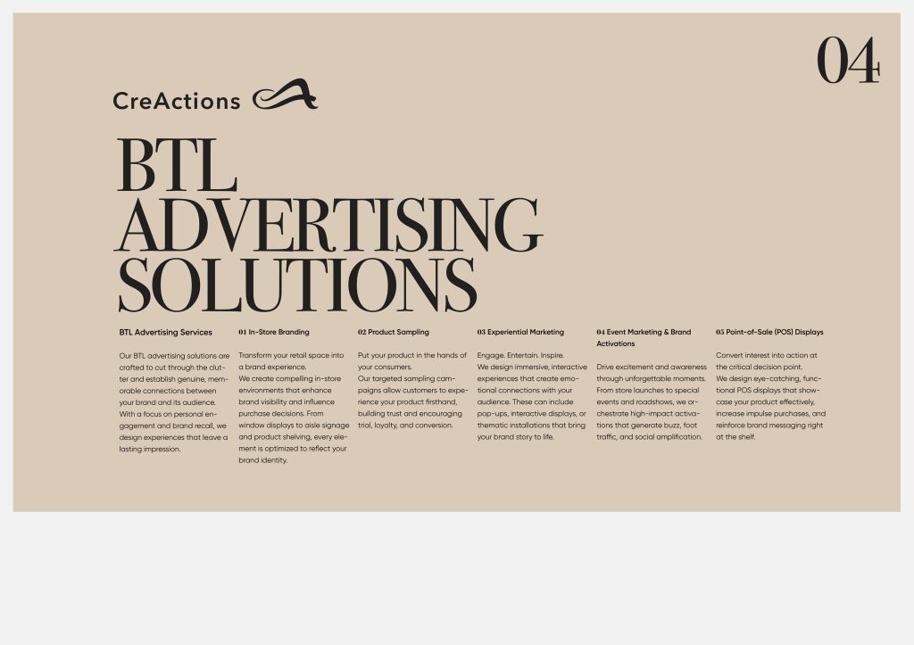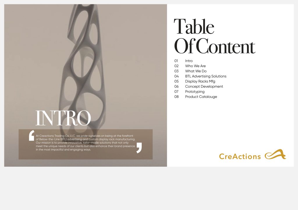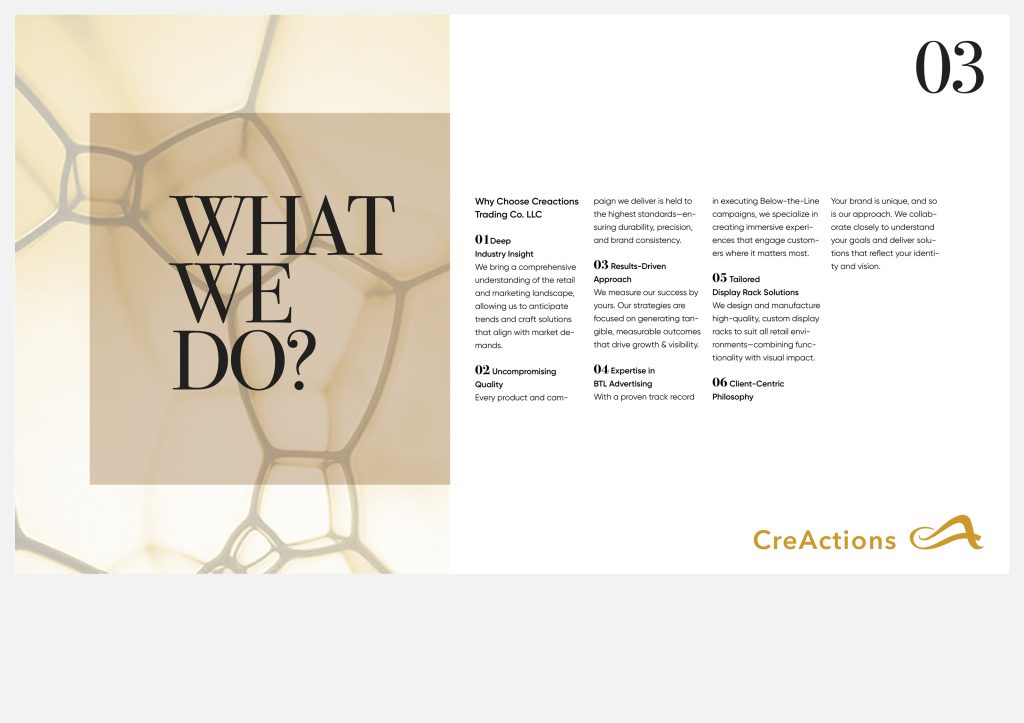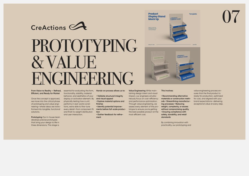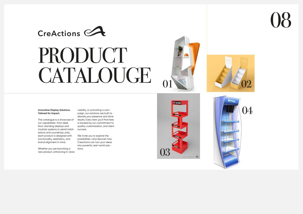 Creactions came to us as the silent backbone of global retail—builders of stands, gondolas, metalwork, plastics, and precision printing. Our job was to shift them from silent enablers to visible leaders. From being the people who “make things” to the people brands rely on to build trust.